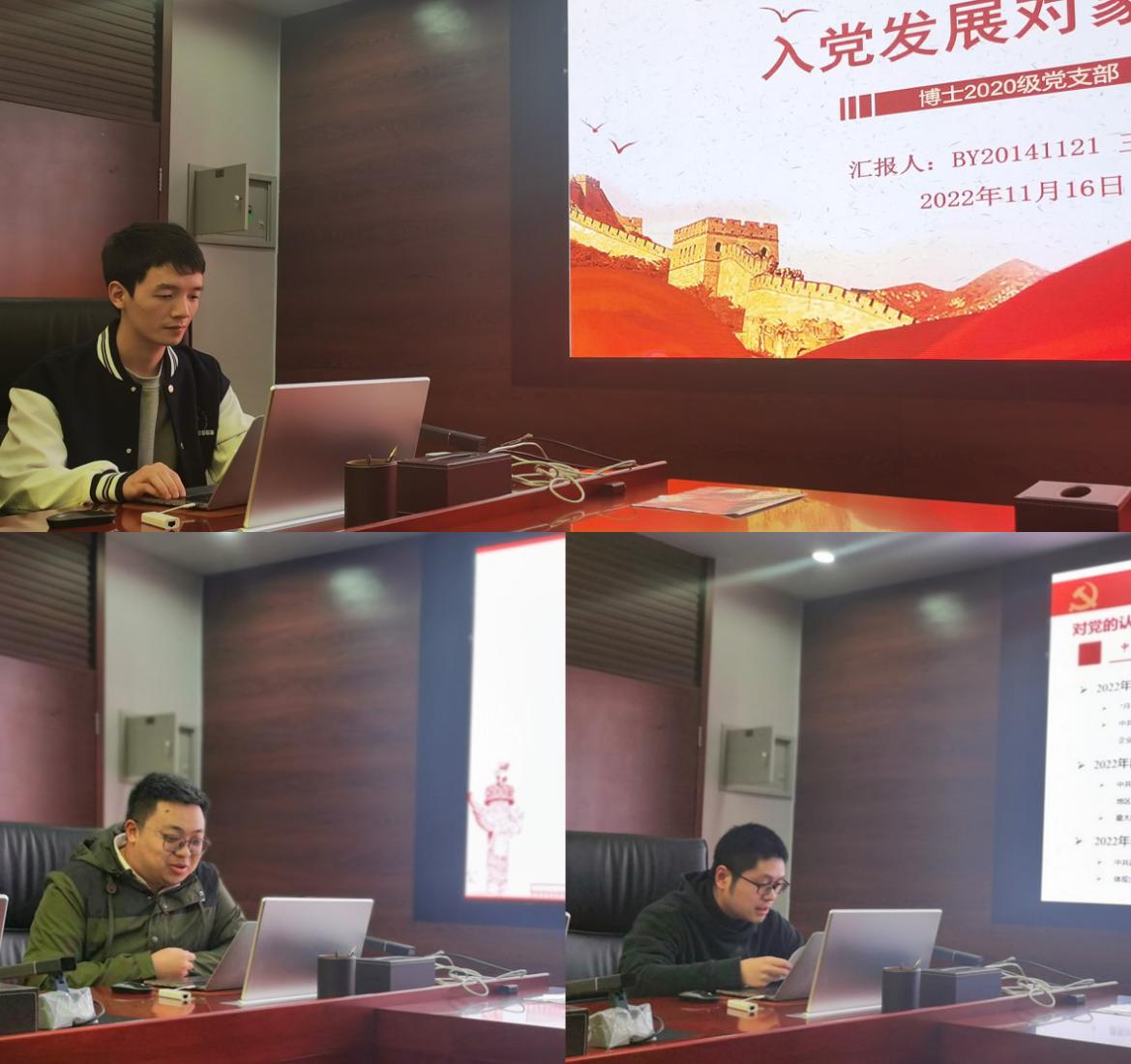 支部在精心组织学习活动的同时也注重将二十大精神学习理解贯彻到党员发展培养过程和思想评价中。在随后进行的确定发展对象公开答辩会中。三位待发展对象刘宗阳、龚煜廉、王俊玲同志也从不同角度分别介绍了近期学习贯彻二十大精神的相关情况。
