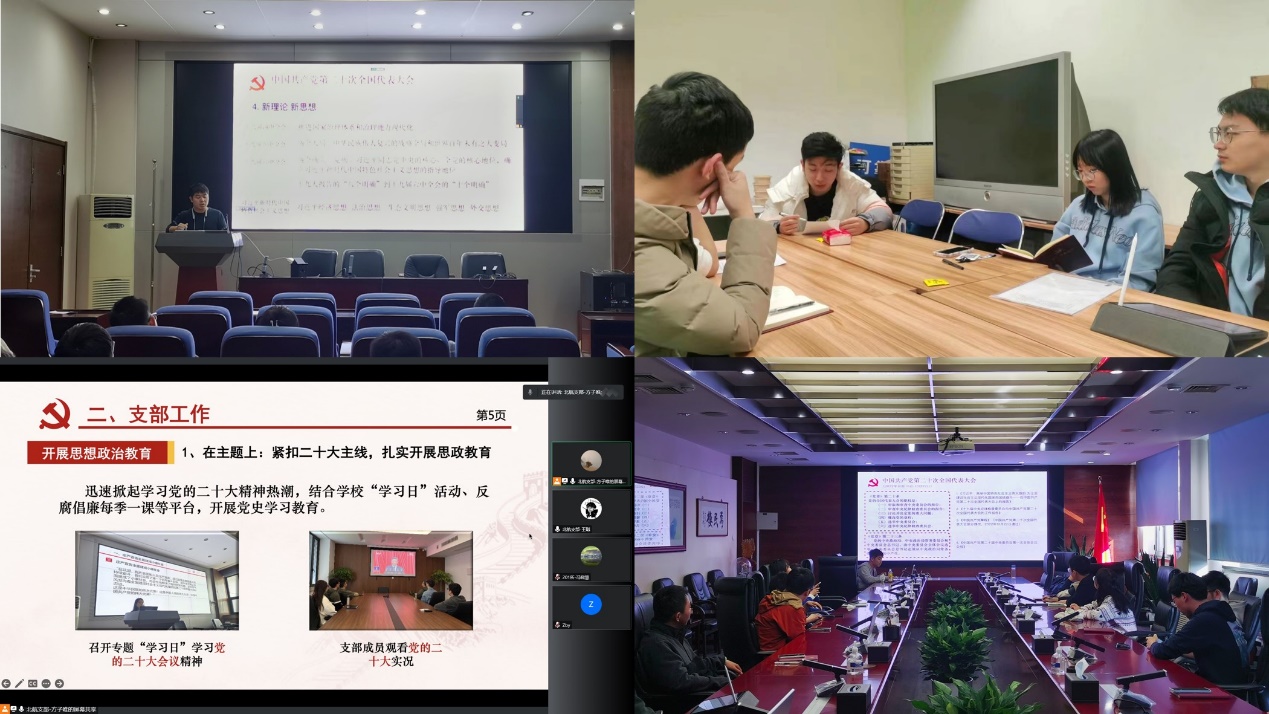 11月16日晚19点,支部在为民楼620会议室开展学习贯彻党的二十大精神主题学习日活动。支部党员和三名待发展入党积极分子参会,对口联系支部的院党委委员、副院长艾骏老师和2020级研究生辅导员胡晏铭列席会议。会议由支部书记方子唯主持。