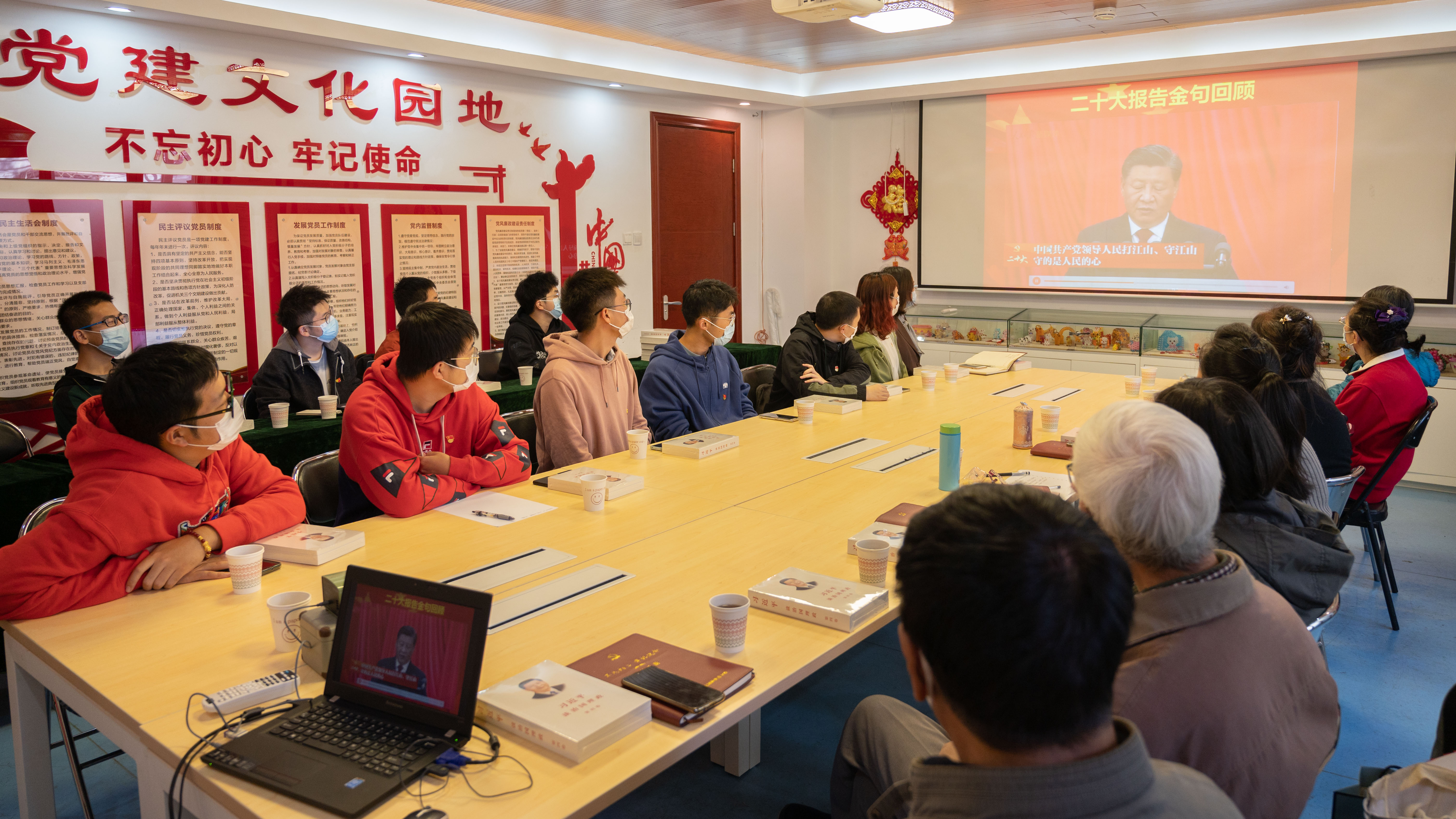 正值党的二十大召开期间,与会党员认真学习二十大报告,共同回顾了二十大报告中振奋人心的金句。