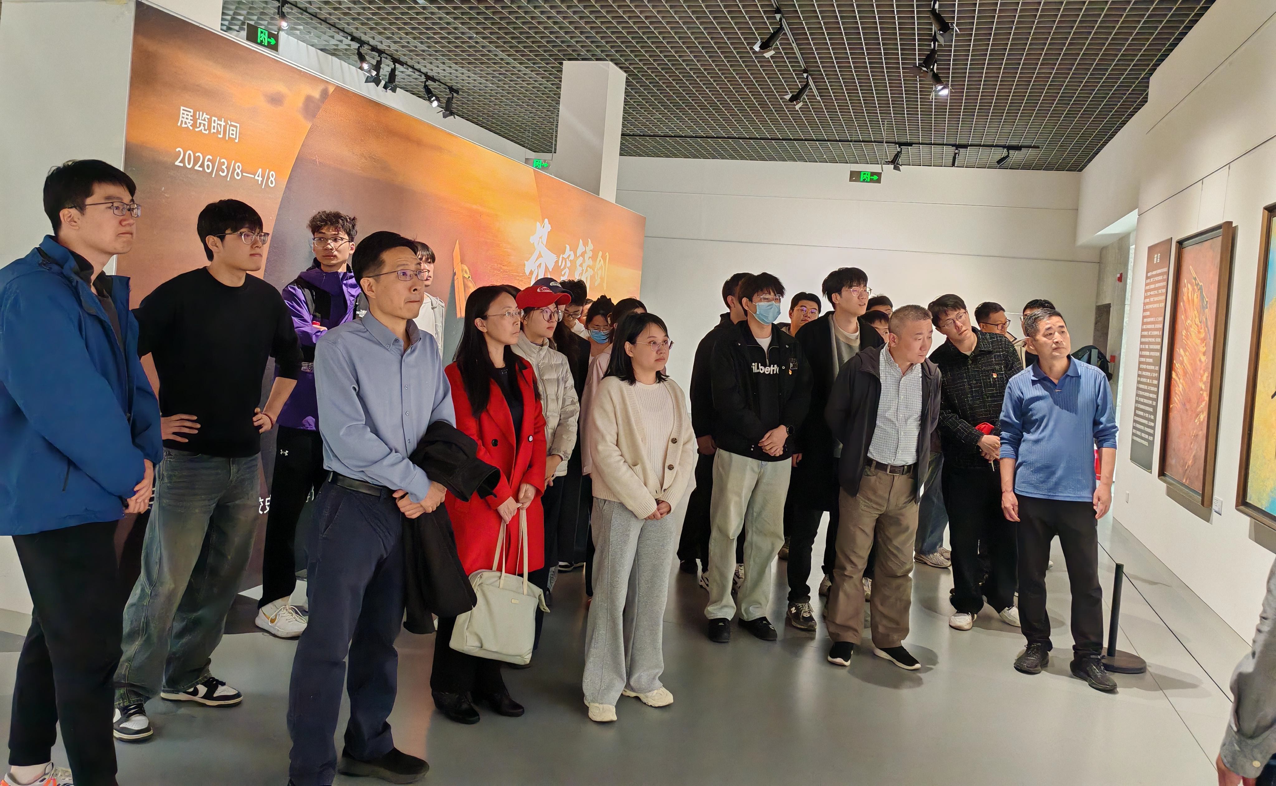 参观过程中,现场学习氛围格外浓厚。支部教师党员们凭借扎实的专业功底,看到展出的各类航空器画作时,立刻精准识别机型,熟练地为身边学生讲解不同航空器的设计特点、性能优势与研发背景, 将专业知识与艺术作品紧密结合。师者言传身教,循循善诱间让学生们在欣赏画作的同时,巩固专业认知,拓宽知识视野。全体师生认真聆听、驻足细看,时而交流探讨,时而驻足记录,在一幅幅苍穹画卷中,深切体会我国航空航天事业的蓬勃发展与航空人潜心笃志的钻研精神、以身许国的赤诚担当。