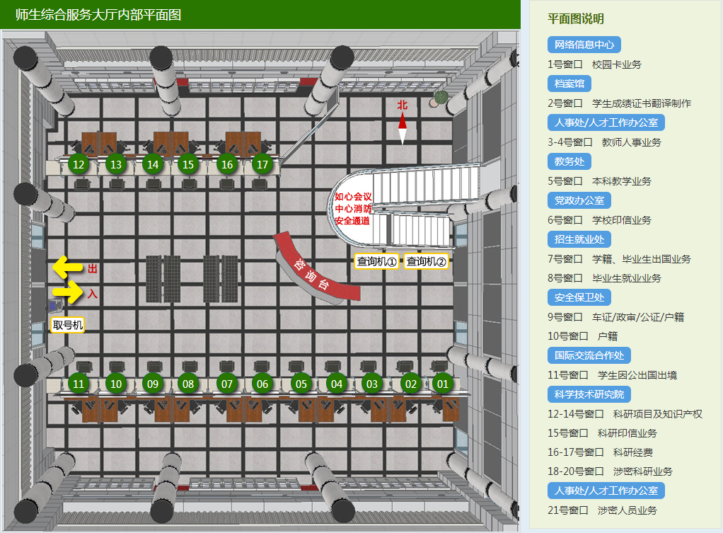 师生综合服务大厅工作时间为:周一至周五上午8:00—12:00、下午2:00—6:00,国家法定节假日除外,国家法定节假日如有调休,按学校规定执行,寒暑假值班安排另行通知。