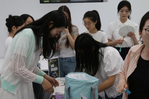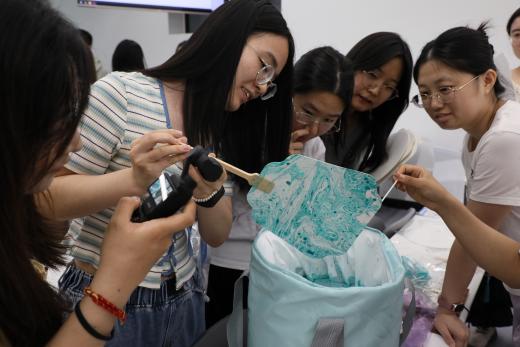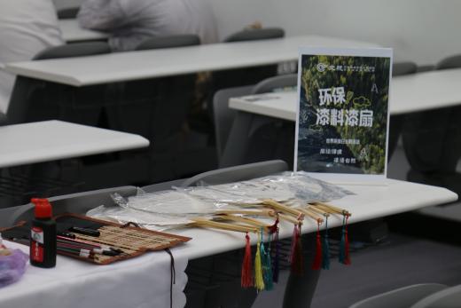 在理论交流之后,活动迎来了充满创意与趣味的"扇绘绿境・漆语自然" 环保漆扇体验活动,让大家在动手实践中进一步感受环保与党建的融合。工作人员分发环保漆扇制作材料后,同学们分组进行漆扇绘制。大家围绕环保、党建等主题,充分发挥创意,用画笔勾勒出心中的美好愿景。嘉宾和现场工作人员积极参与指导和互动,与同学们共同创作,让环保理念在笔尖流淌。